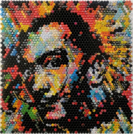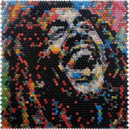Das Unikat „Bob Marley - One Love“ besteht aus 2.630 Kronkorken, die zu einem farbintensiven Mosaik arrangiert wurden.Das Porträt selbst ist mehr als eine Darstellung Bob Marleys. Es ist eine visuelle Hommage an die universelle Sprache der Musik, die Grenzen überschreitet und Menschen verbindet. Durch die Vielzahl der Einzelelemente wird zugleich ein musikalischer Rhythmus spürbar – jeder Kronkorken erscheint wie ein Ton oder Schlag, der sich im Gesamtbild zu einem harmonischen Ganzen fügt.