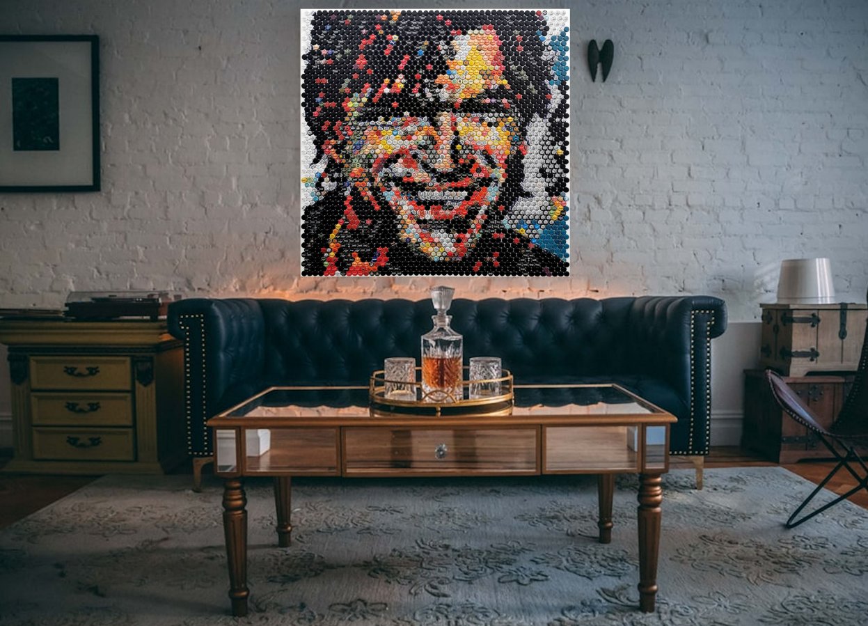 Dieses einzigartige Bild in der Größe 140cm x 140cm mit 2632 gebrauchten Kronkorken, die mit einer speziellen Technik auf die beidseitig weiß beschichtete Alu Dibond Platte (3mm) angebracht wurden, stellt den deutsch-britischen Sänger und Songwriter Campino, mit bürgerlichem Namen Andreas Frege, dar. Campino ist der Frontmann der Düsseldorfer Band Die Toten Hosen und arbeitet als Schauspieler in Theater, Film und Fernsehen.